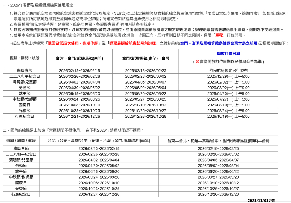 3. 開票後限本人使用,不得轉由他人使用、不得更改航程。