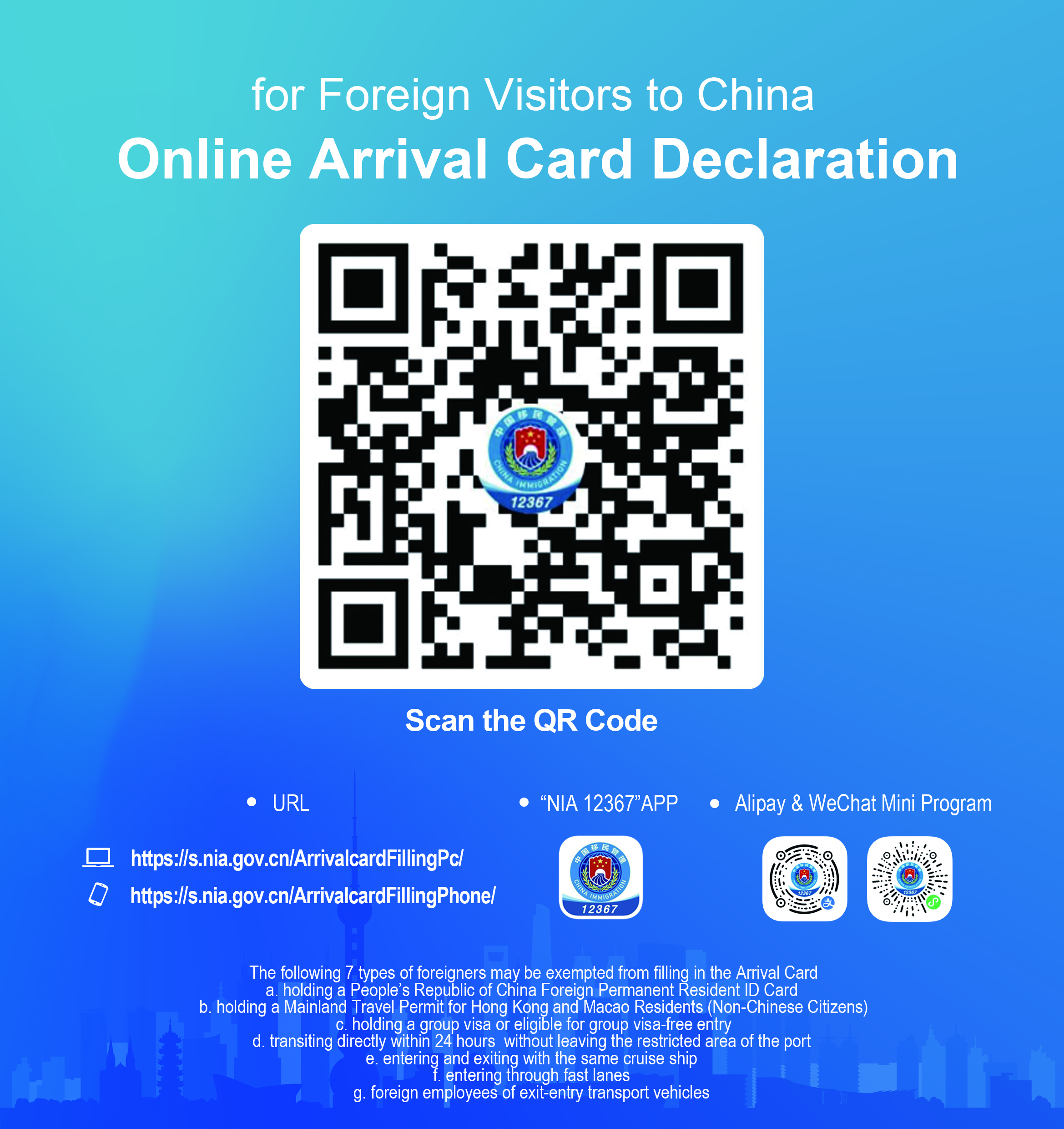 自 2025 年 11 月 20 日起,所有外國旅客在入境中國之前,必須透過線上平台(可使用智慧手機或電腦)進行入境前申報。因此,以前的紙本入境卡就不再需要了。